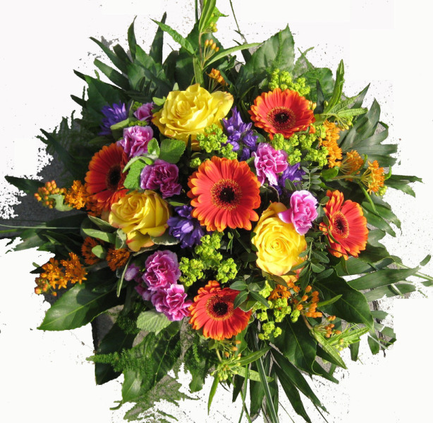 In diesem gruppiert gebundenem Blumenarrangement sind enthalten: