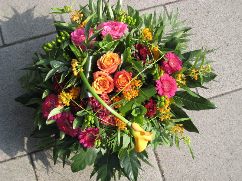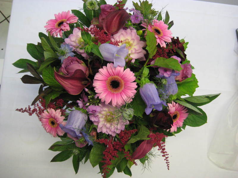 Gerbera, Rosen, Astilben, Dahlien, Calla, Phlox, Alchemilla und Sommergrün