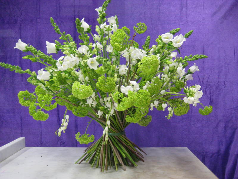 Sommerblüten in rweiss, mit Gräser, locker gebunden
